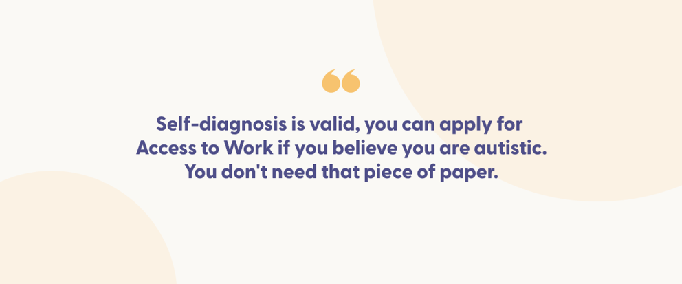 “Self-diagnosis is valid, you can apply for Access to Work if you believe you are autistic, you don't need that piece of paper, and that's really important to know because diagnosis is a privilege that is denied to many people.”