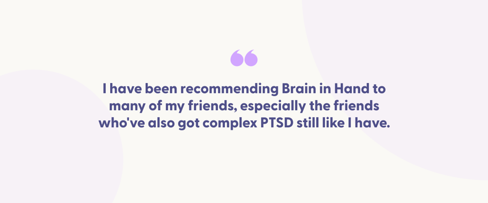 Charlie finds Brain in Hand to be a useful tool as a neurodivergent adult, but also as someone navigating complex PTSD. “I have been recommending Brain in Hand to many of my friends, especially the friends who've also got complex PTSD still like I have.”